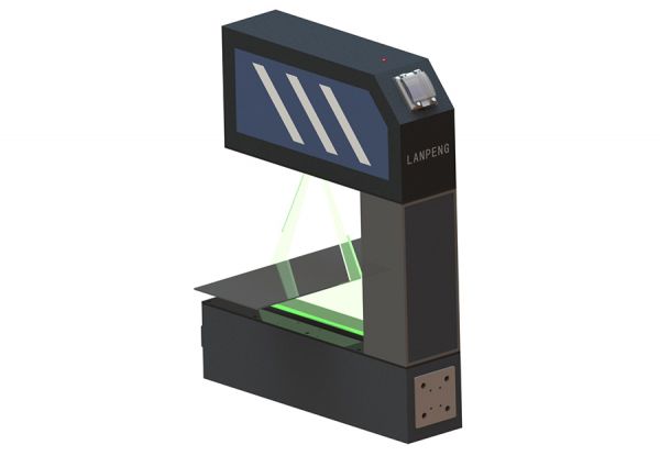 設(shè)備采用廣角測(cè)頭測(cè)量,測(cè)頭豎直布置,設(shè)備主要配置小型單片機(jī)系統(tǒng)、外接數(shù)碼管顯示屏,根據(jù)需要可增配嵌入式智能模塊、上位機(jī)控制系統(tǒng)等。設(shè)備下部可配置剪刀叉升降平臺(tái)等輔助設(shè)備。